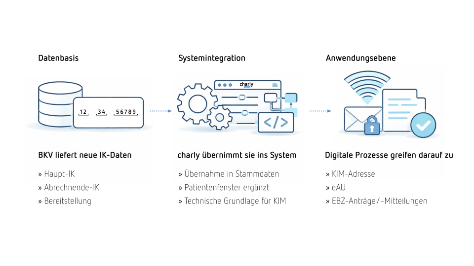 Die Einführung der Haupt-IK ist ein weiterer Schritt hin zu einer durchgängig digitalisierten Kommunikation zwischen Praxen und Krankenkassen. In den kommenden Jahren wird die Bedeutung standardisierter Identifikations- und Kommunikationswege weiter zunehmen – insbesondere, wenn zusätzliche Verfahren über KIM angebunden werden. charly wird diese Entwicklungen kontinuierlich begleiten, damit Praxen jederzeit sicher, korrekt und effizient digital kommunizieren können.